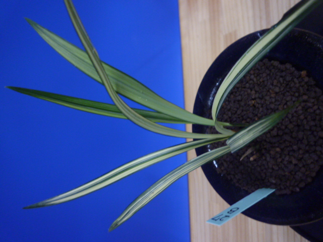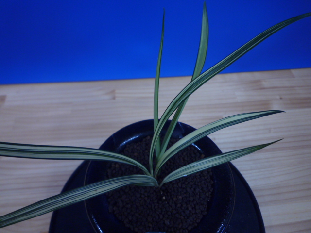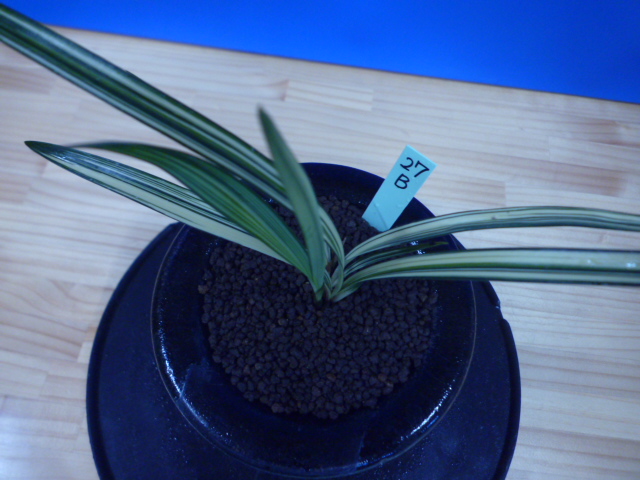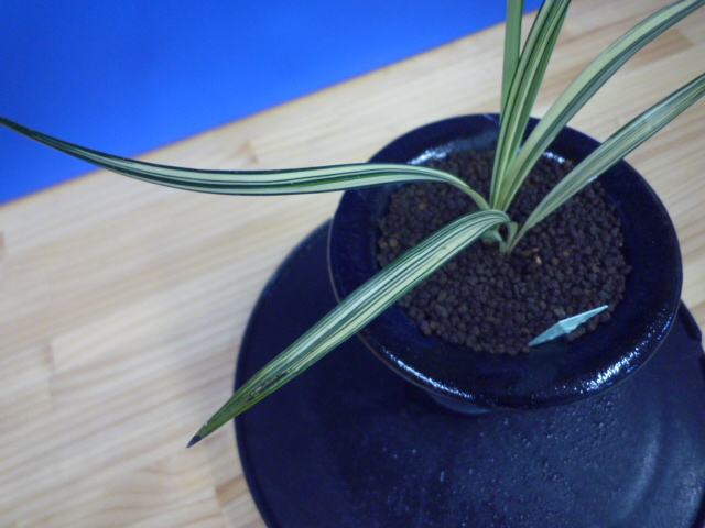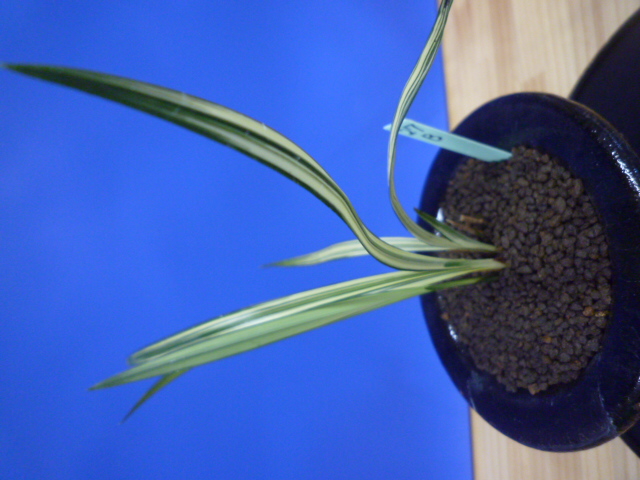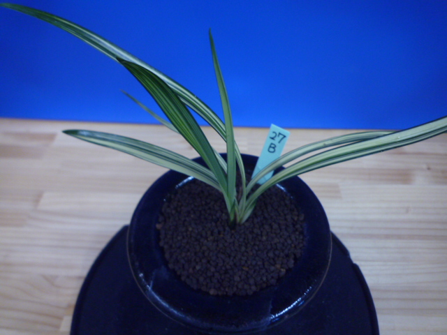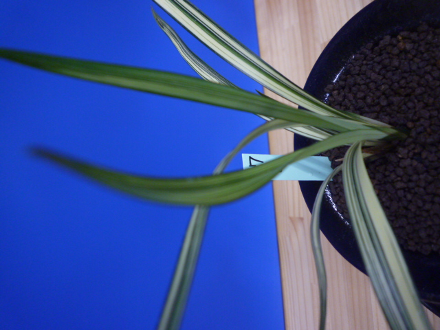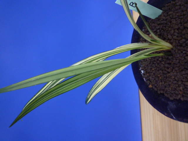 天寿は、宮崎県産の紺覆輪中透け縞の柄物で、紺地が深く、中透とのコントラストが美しい最も人気がある高い葉芸品の一つです。柄性が良く葉姿にも品があり、いつみても惚れ惚れする最高品種の一つです。柄において抜群の安定感があり、一度は作りあげてみたい逸品です。
