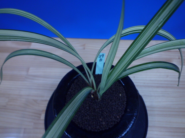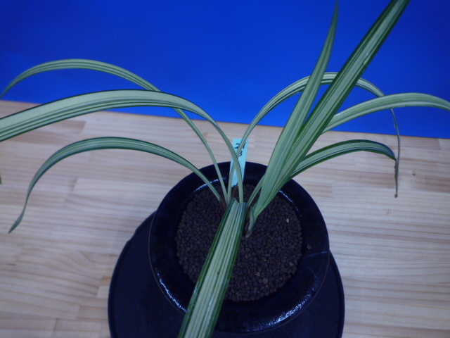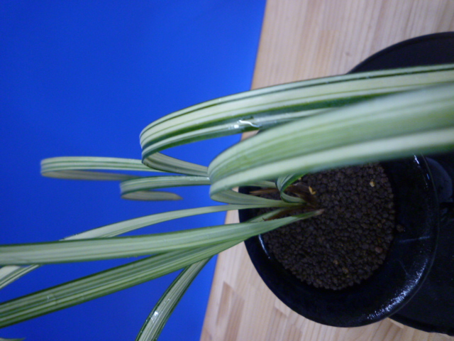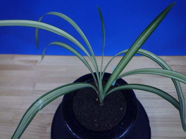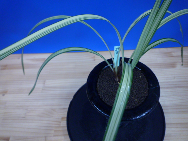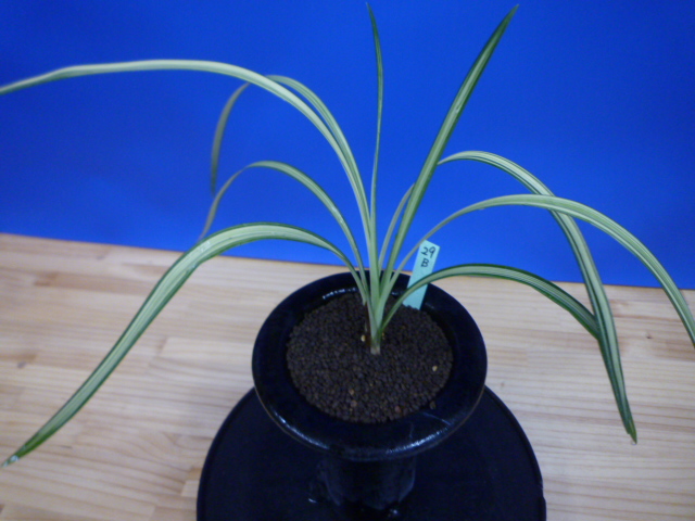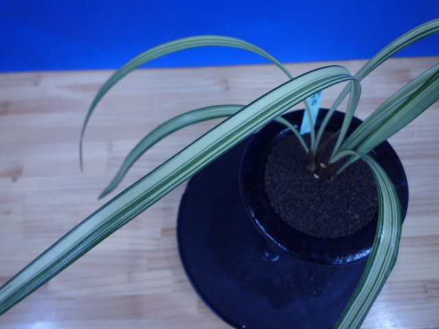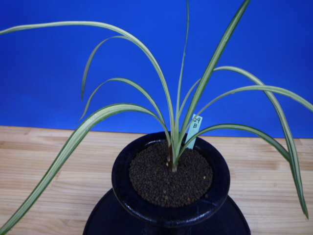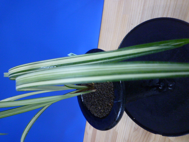 南極は、宮崎県産の垂れ葉が特徴的な縞で、花も縞花という大変魅力的な一品です。展示会でも評価が高く、良く大臣賞・金賞を獲得してきましたし、これからもこの人気は変わらないでしょう。柄物の中では比較的作り易い品種ですので、作が楽しめますのでお勧めです。