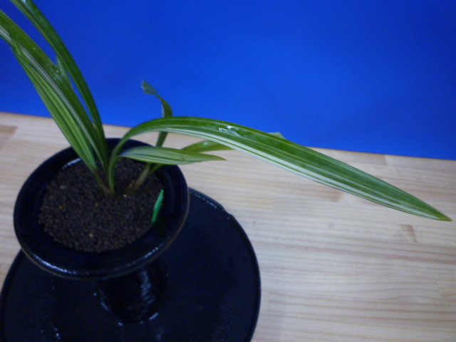 鹿児島県産の萠輪です。西隆が変化して縞になりました。柄の安定感はありませんが、柄の変化が多彩で株ができていろいろな柄が一度に見える柄タイプは大変良いものです。柄作りを楽しむ醍醐味がある逸品です。