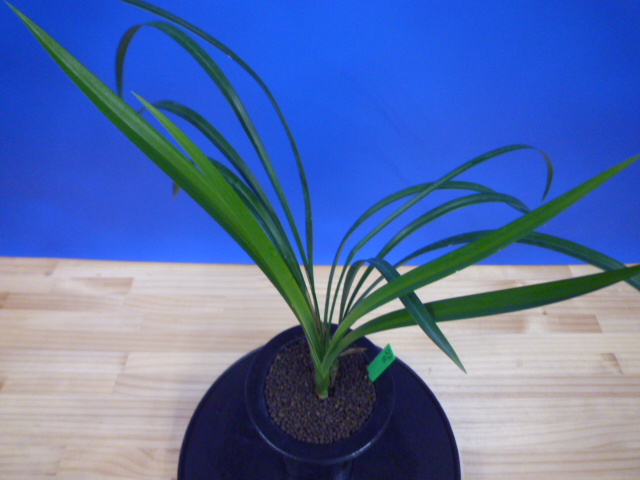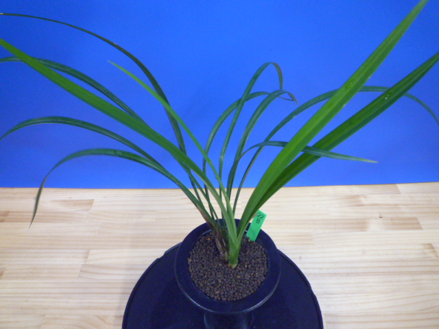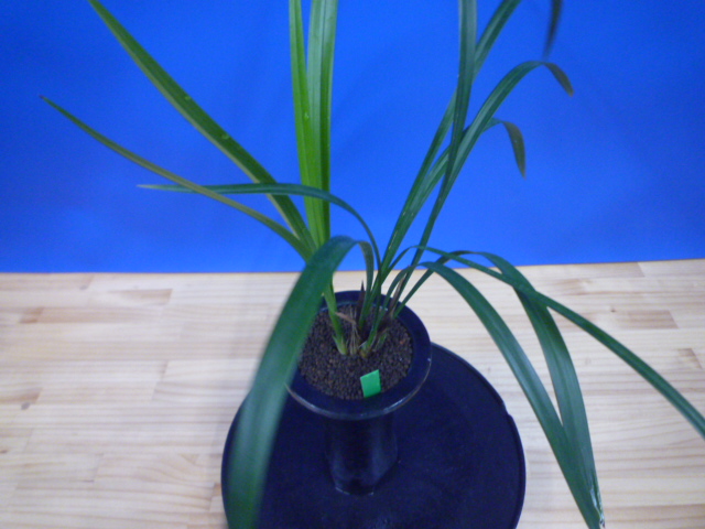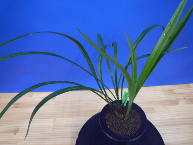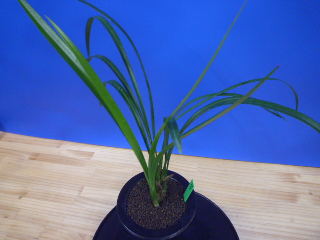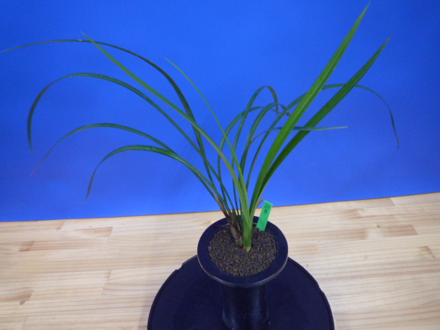 南雪は、鹿児島県産の一文字咲きに近い平肩咲きの白花素心です。花軸の伸びも良く花間も良好で、展示会でも人気があり良く金賞をとっています。昔から根強い人気がある白花の特上花です。キレのある白花一文字で、葉姿から花間でまとまります。