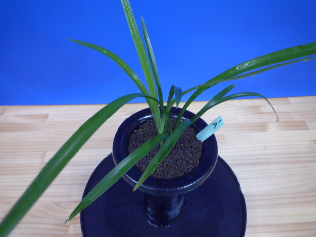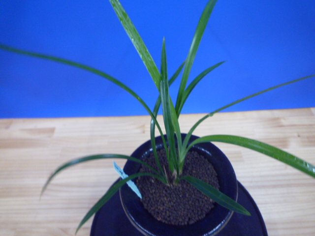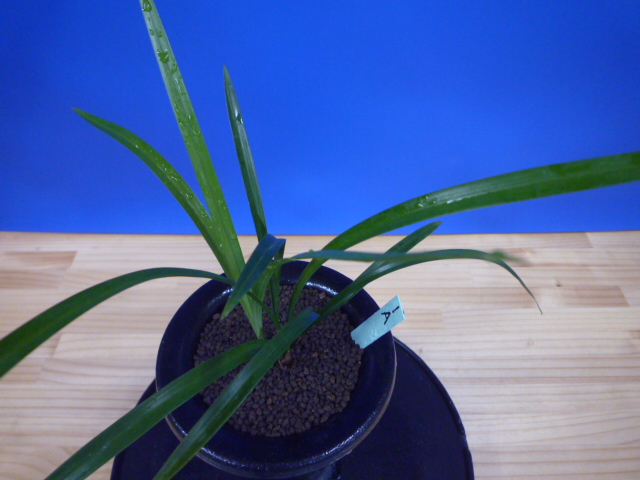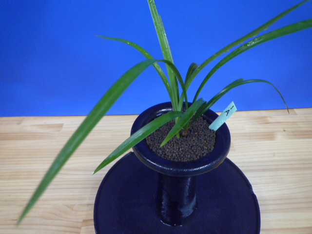 払越産の濃紅一文字大輪で大きな丸い舌を持っています。登録はされていませんが、とても花形が良く、色もきれいで舌も大きくて良い花です。花が葉上に抜け上がり、花間がよく花がしっかり楽しめます。画像はないのですが、これまでに何度も花を咲かせてきた花ですので、色もきれいで花弁に切れがあり◎。肇国などのがっしりした花ではありませんが、すっきりした花ですのでお勧めいたします。