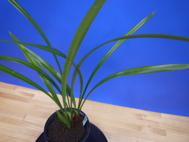黒酔は、高知県べからず山産の舌が大きく丸い黒紅で一文字に近い平肩咲きです。宮崎県蘭協会で登録された品種で、広弁で花型が良く、発色が良く黒紅が良く出ます。丸くふっくらとした舌が大きく、舌点が濃く大変迫力があります。花数が少なく花間も良好で、バランスも申し分なく黒紅花の最高品種の一つです。