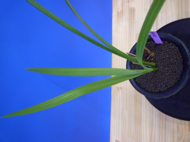 大吉は、高知県産の花間の良い青花で花弁が厚く、舌の大きい花です。花軸の伸びが良く、花数も程良い品種で展示会では大変人気が高く良く金賞を獲得します。まだまだ数の少ない品種です。花軸の伸びが良く、花間花数ともに良好で、花が咲くととても人気があります。