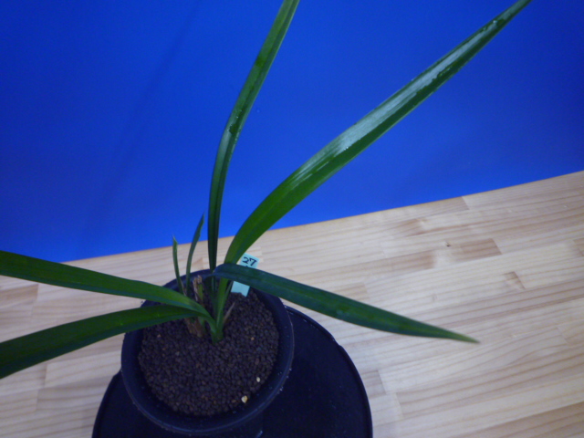 司の華は、宮崎県尾鈴産の白花準素心の大輪花で、昔から大変人気のある宮崎を代表する白花の王様です。花軸の伸びが良く、花間・花数ともに申し分なく、展示会でも総合優勝するなどよく大臣賞・金賞をとる人気実力のある花です。白花の代表格で昔から現在でも人気の絶えない名花です。数年前まで地元にはたくさんあった司の華ですが、今では大きな木を手に入れることが難しくなってきました。