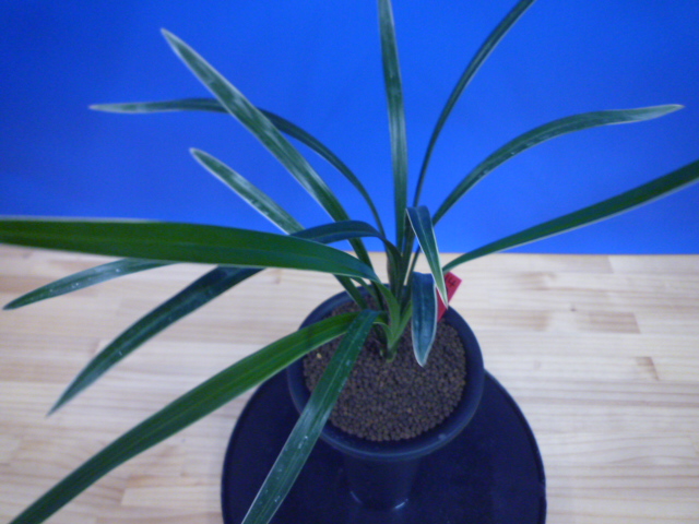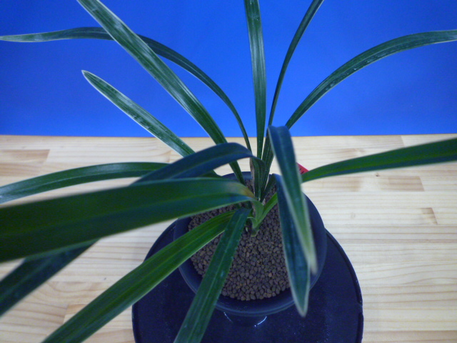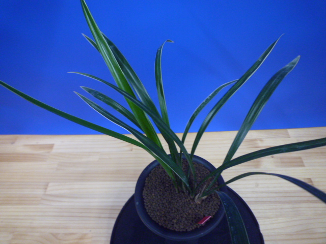 慎太郎は、高知県産の「帝王」の坪取れです。型の良い紅花の丸舌で、葉には覆輪を掛けます。高知県の展示会でも優勝したことのある花で、花弁が厚く、花軸の伸びも良く花間もしっかりとる魅力的な花です。作り易い品種で、花持ちも良くじっくり楽しめます。