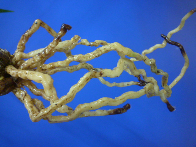 大黒は、鹿児島県産の黒花です。花弁がしっかりした黒紅で、花間が良く、花軸伸びが良くバランスの良い花で字とも鹿児島では大変人気の一鉢です。チャボ性のかっちりした硬質の葉で40㎝を超える程度で成木になります。まだまだ数の少ない品種ですが、将来性の高い黒紅ですので、お勧めいたします。