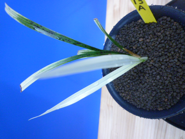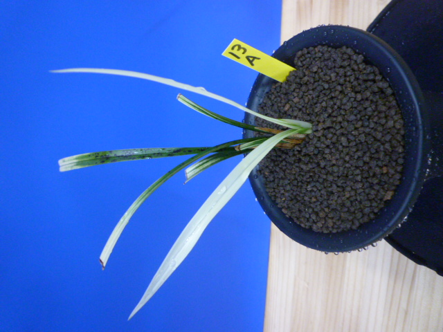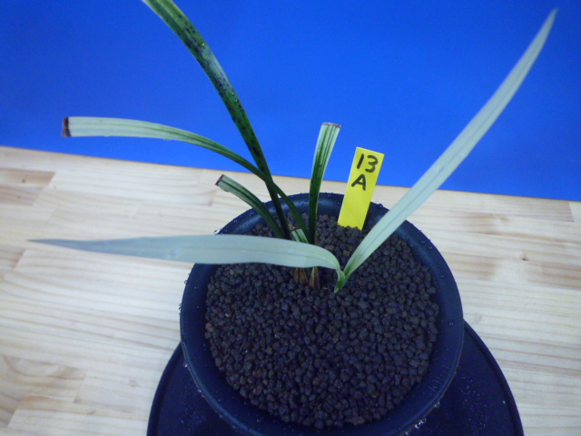 派手な月照晃の芽出し品です。根も綺麗に伸びていますので、これからの柄の変化を楽しみながら、じっくり作っていきましょう!!将来有望な品種ですので、お勧めいたします!