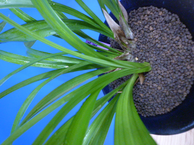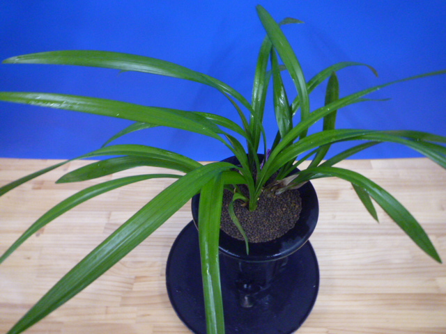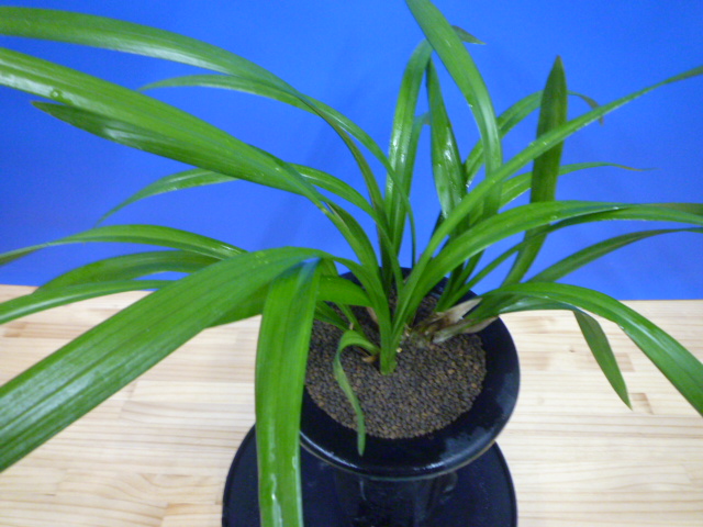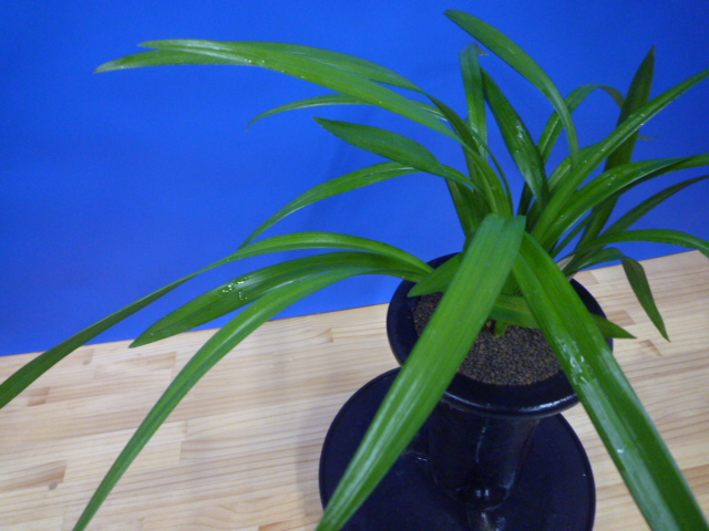 玉青冠は、交配種の花弁が広い厚弁の青花で舌も大きく魅力的な花です。花がしっかりしていて、花崩れが少なく内弁の押さえも良好ですので、じっくり花を楽しめます。中垂れ葉で花軸の伸びが良く、花間・花数ともに良く展示会でも大変優秀な成績をおさめてきました。木が大きくならずとも花を咲かせ、また咲かせた花は広弁で舌が大きく豪快な感じでとても迫力があって良く見えます。