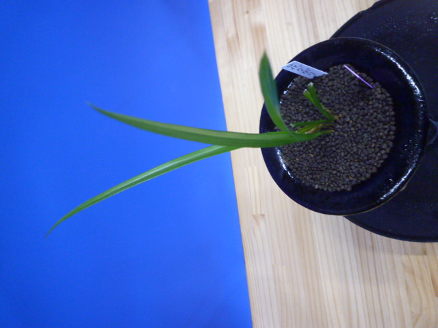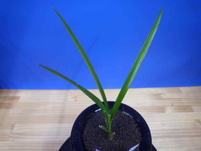 チャボ性の締まった葉で、通常の成木よりも小さい35㎝以上で成木になります。ですので小花ですが、花も抜け上がり全体的に小さくまとまりがあり、非常に色が綺麗でこれからの理想的な寒蘭像をしています。小花ですが大変色が綺麗で全体的なバランスが良く、これまでにない世界観がある花ですので、ぜひ堪能してください!!