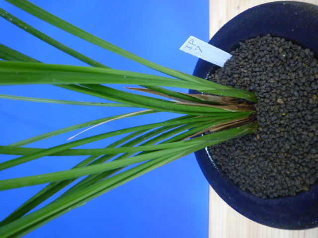 清美は、高知県名の浦産の青更紗の一文字咲きの超大輪花です。舌の大きくキレのある花で、展示会では良く金賞を獲る品種です。大輪花の中でも最も大きくなる花の一つで、ここまでの大輪花はあまりありません。花間も良く、花数も少なく大きく、とてもバランスよく花を見せてくれる優秀な花です。