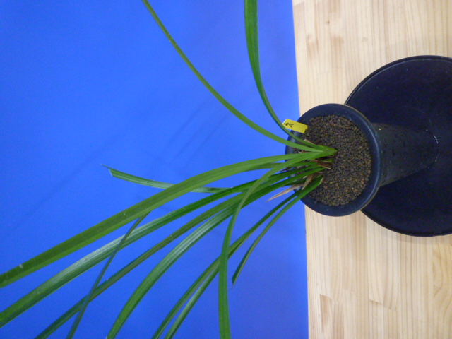 夢は、高知県産の青大輪花の赤ベタ舌で、土佐愛蘭会の70周年記念大会で総合優勝した大変人気・実力のある花です。型の良い花で花間が良く、花弁もしっかりとした花です。しっかりした花ですので、型崩れが少なく花持ちも良好です。白舌の赤ベタがきれいで、素晴らしい花です。花軸が完全に抜け上がった時の夢は、非の打ちどころがありません。
